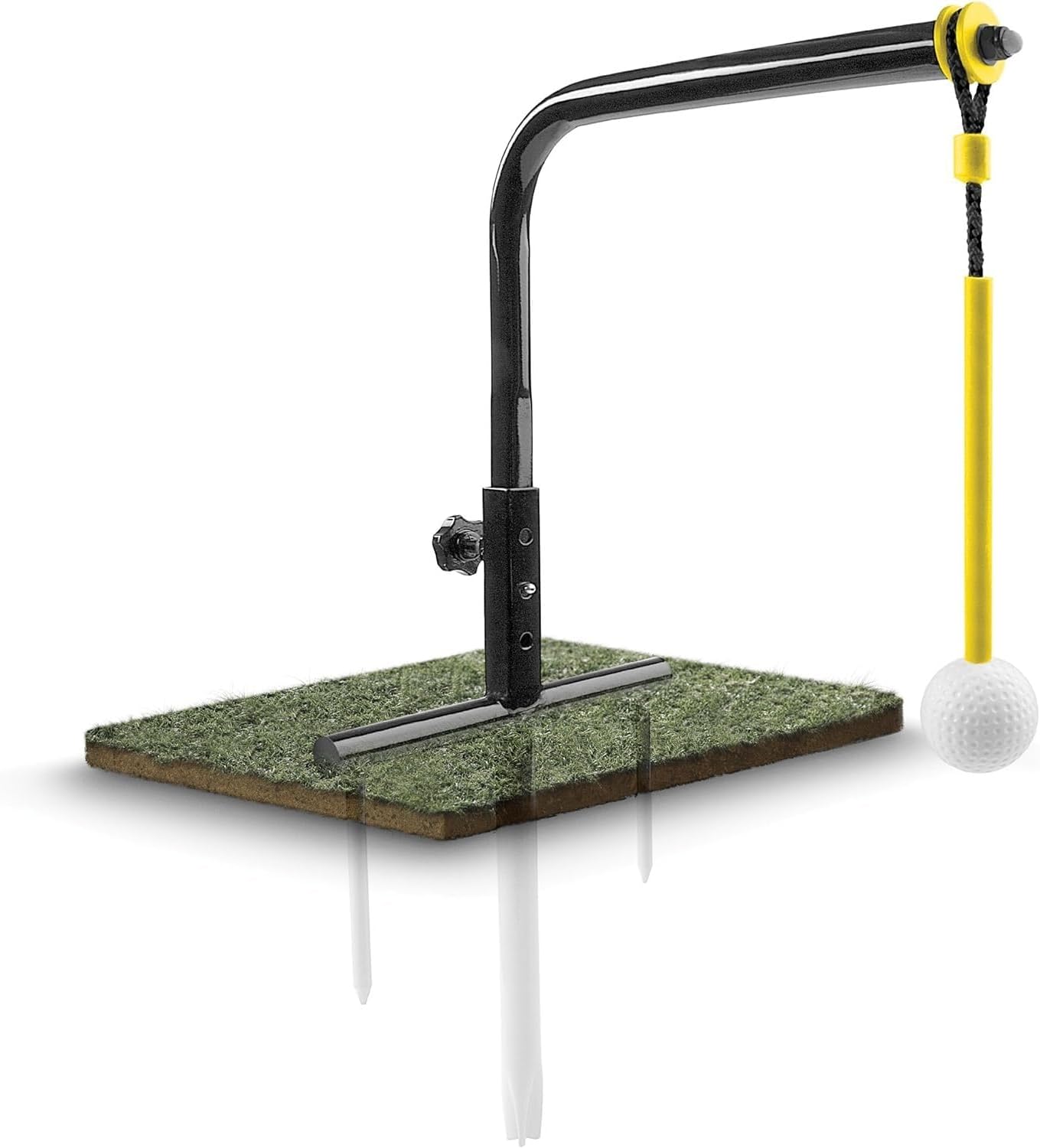 [Helps correct pushes pulls slices and hooks Gives immediate feedback on swing path Sets up quickly and easily – stakes into the ground to eliminate the need for a practice net Ball material delivers durability and true feel of contact Upright adjustability for use with drivers hybrids and irons]